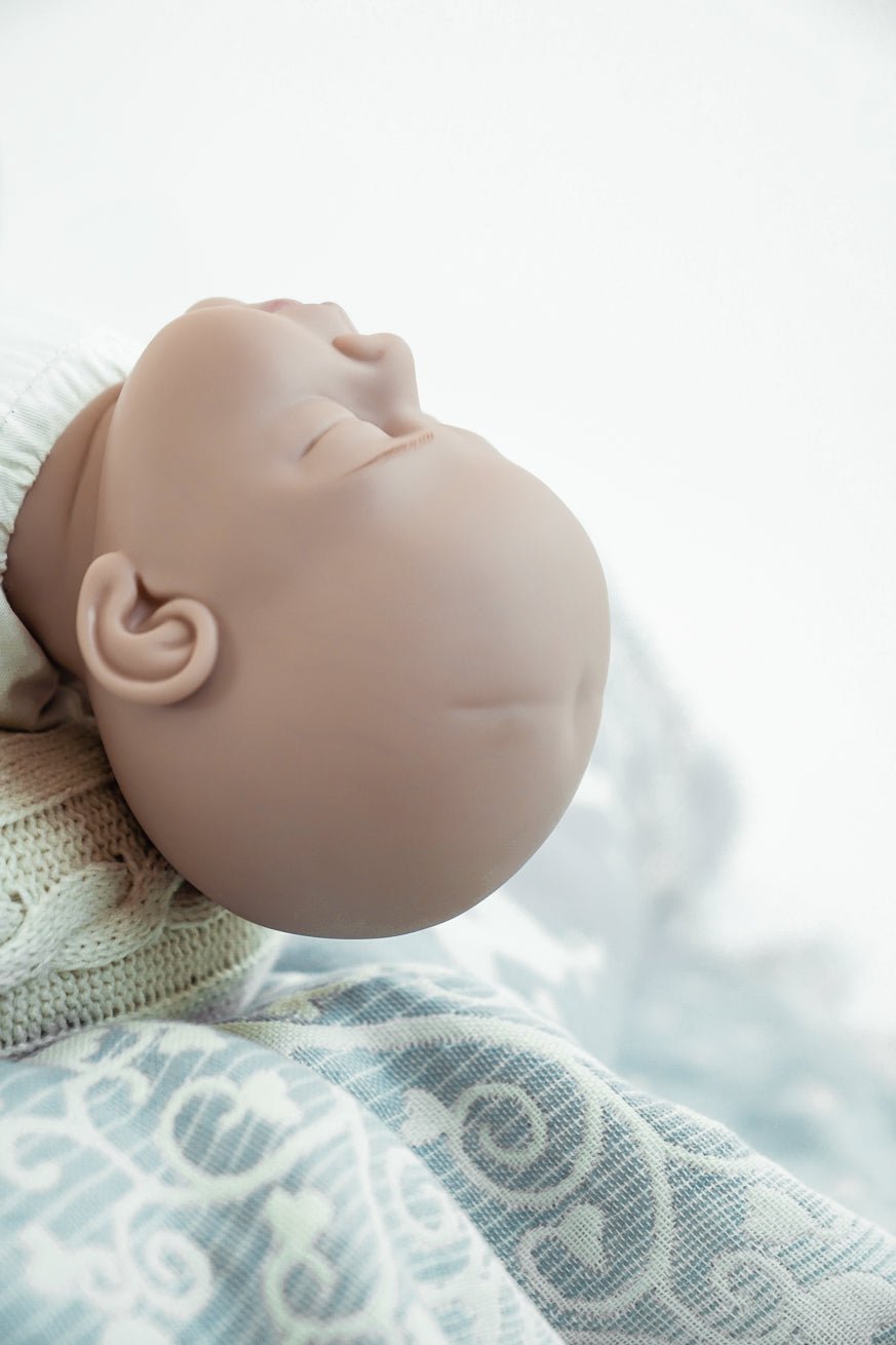 Der natürlich wirkende, schwere Kopf der Puppe simuliert die Nichtfähigkeit eines Neugeborenen, das Köpfchen zu halten und hilft, die Wichtigkeit des richtigen Stützen des Kindes zu erklären und zeigen.