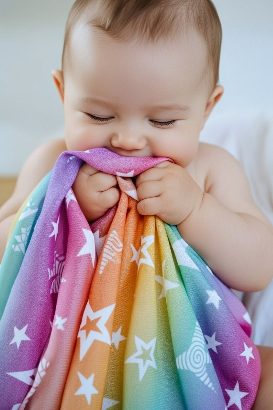 Que ce soit comme aide-sommeil, doudou ou pour se blottir dans le porte-bébé - notre doudou en mousseline au magnifique design Julia Stars est un fidèle compagnon de tous les jours pour votre bébé.