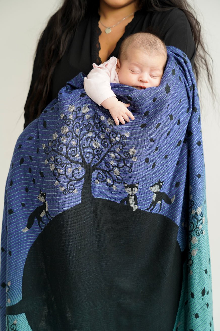 Perfekt, wenn du die Babytrage mit deinem Partner teilst! Unten Schnell geklckt, oben nichts verstellt - einfach anlegen, knoten, fertig!